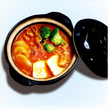 泡菜锅在我看来就是大杂烩,什么都可以往里扔。我这锅泡菜汤,有肉——培根、火腿片,有菜——土豆、西兰花、金针菇,有蛋白质——豆腐,有乳酸菌——泡菜。